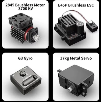 Brushless power system: 2845 motor (~3700 KV) + 45A ESC with cooling fan