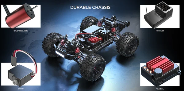 The MJX Hyper Go 16209 is a high-speed, ready-to-run off-road truck in a compact 1/16 scale. With a 4WD drivetrain, waterproof electronics, and a powerful 2845 brushless motor with 45A ESC, it delivers thrilling performance. Top speeds of ~45 km/h using the included 7.4V Li-Po battery, and even faster with optional upgrades. Remote operates on 2.4 GHz, supports multiple models simultaneously, and LEDs are controlled remotely. Includes oil-filled shock absorbers, metal differentials, drive shafts, and USB battery charging. Many parts are upgradeable for customization.