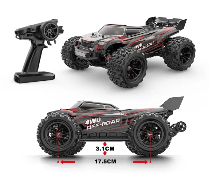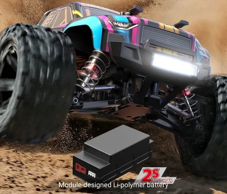 The MJX Hyper Go 16210 is a compact yet powerful off-road machine. Built at 1:16 scale with 4WD, it comes ready to run with just the addition of two AA batteries for the remote. It features a brushless 2845 motor plus a 45A waterproof ESC, oil-filled metal shocks, and durable, high-traction tires. Speeds reach roughly 45 km/h using the standard 2S Li-Po battery; higher speeds are possible with upgraded options. Control is via a 2.4 GHz radio, and the electronics are water and dust resistant. This model is upgrade-friendly, letting hobbyists fine-tune performance.
