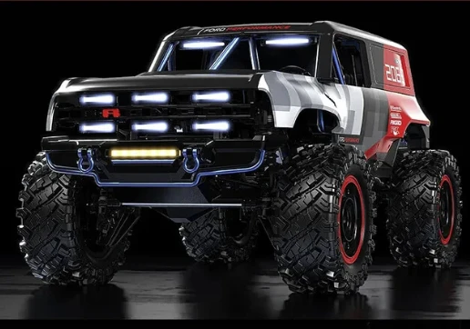 Bring the legendary Ford Bronco R Baja 1000 to your RC setup with the MJX Hyper Go H12P. This officially licensed 1/12 scale 4WD truck pairs high-detail realism with powerful brushless performance. Equipped with a 3650 motor, E45M ESC, and a heavy-duty 20 kg metal gear servo, it delivers responsive, precise steering and strong drive. The reinforced metal drivetrain, oil-filled shock absorbers, splash-resistant electronics, and rugged chassis frame ensure durability across rough terrain. Enjoy up to 40 minutes of run time per charge. Designed for both hobbyists and collectors.