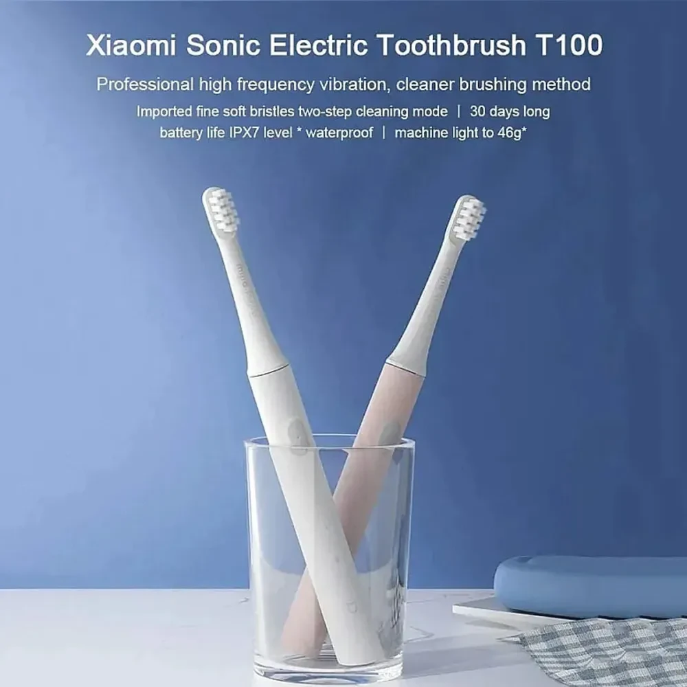 The Xiaomi Mijia Sonic Electric Toothbrush T100 is a lightweight and efficient toothbrush designed to enhance your oral hygiene routine. It delivers up to 16,500 vibrations per minute, ensuring deep cleaning of your teeth and gums. The toothbrush features two cleaning modes—Standard and Gentle—catering to different oral care needs. Equipped with a 2-minute timer and 30-second interval reminders, it promotes optimal brushing habits. Its IPX7 waterproof rating allows for safe use in wet environments, and a full charge provides up to 30 days of usage. Weighing just 46 grams, it is portable and ideal for travel. The toothbrush comes with a USB charging cable and a soft brush head, making it a convenient choice for daily oral care.