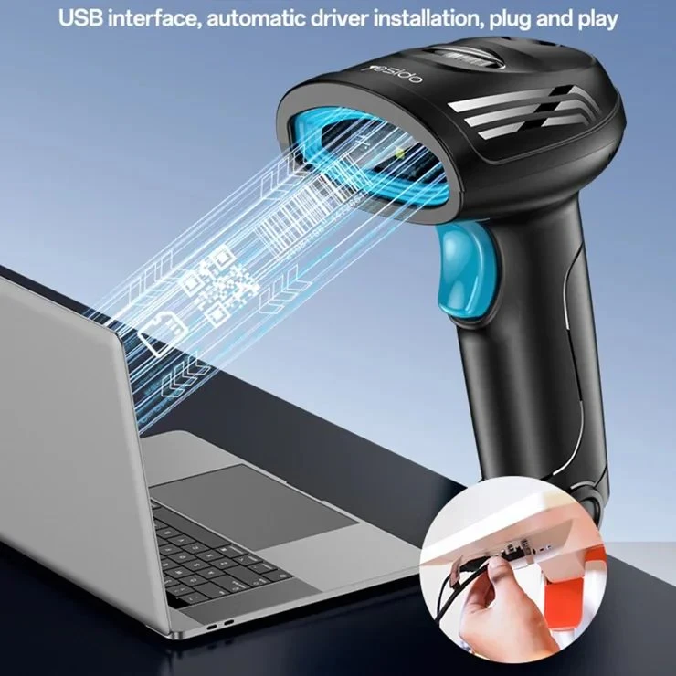 The Yesido Barcode Scanner is a fast and reliable solution for all your scanning needs, saving time and effort from manual entry. It efficiently reads both 1D and 2D barcodes with high sensitivity, ensuring quick operation. Supporting PS2, RS232, USB, and USB-COM ports, it is compatible with a wide range of systems. The scanner works from a distance of up to 10 cm and offers full 360° scanning capability for maximum flexibility. Designed to be lightweight and ergonomic, it provides comfort during long hours of use. It can even scan from paper, LCD screens, mobile devices, and damaged or inverted barcodes, making it a versatile choice for businesses and daily operations.
