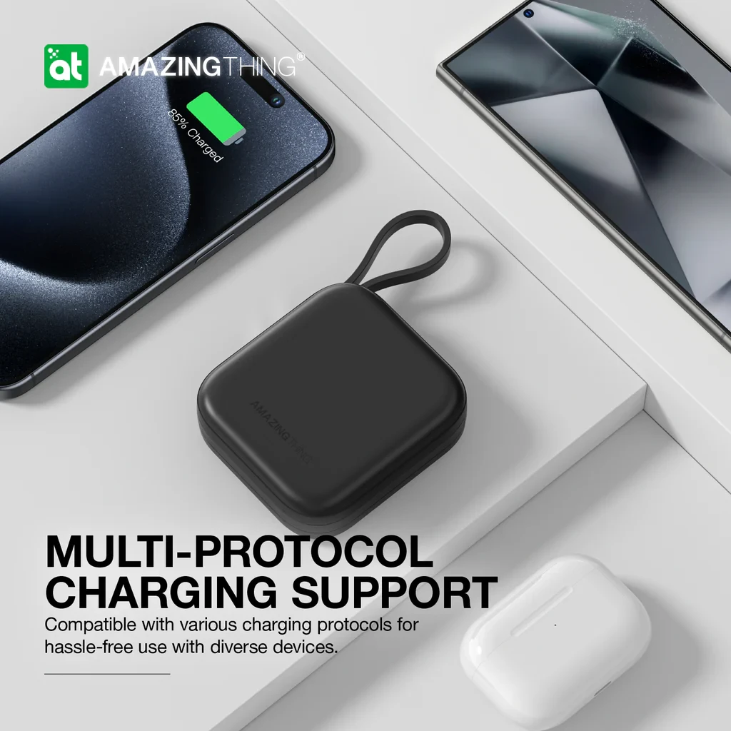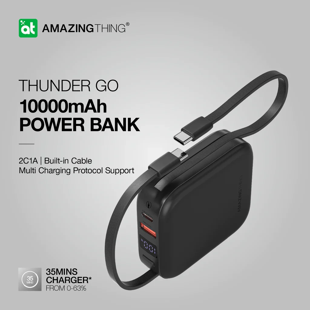 The AmazingThing Thunder Go Power Bank is made for fast, on-the-go charging in Qatar. With 10,000mAh capacity and dual built-in USB-C cables, you can charge two devices without carrying extra wires. Its sleek black design is perfect for daily use, travel, or office life.