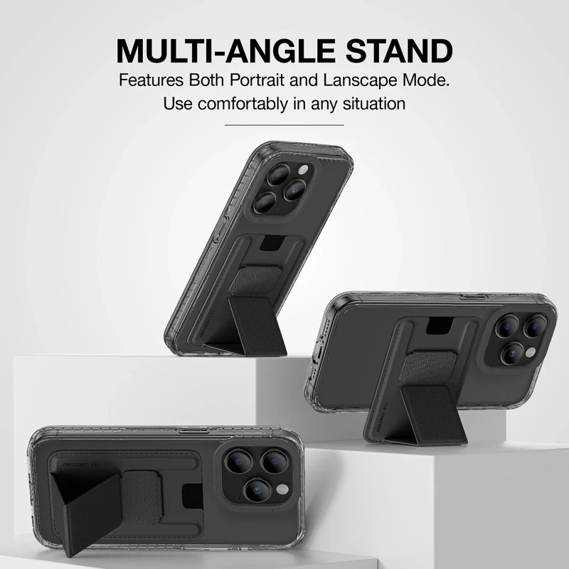 The AmazingThing Titan Pro Mag Wallet Case offers premium protection and versatile functionality for your iPhone 15 Pro. Built with German anti-yellowing transparent material, it resists clouding and discoloration while maintaining a crystal-clear look. X-Cushion Pro IV technology absorbs shocks effectively, while Defend Edge III provides complete camera lens protection. The built-in multi-angle stand supports both portrait and landscape modes for comfortable viewing, and the raised bezel safeguards your screen against drops and scratches.