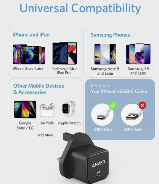 20W fast charging for phones and tablets