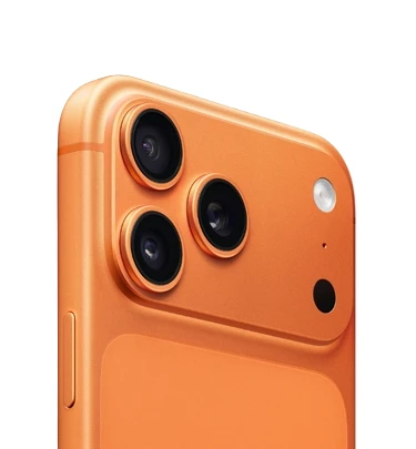 A trio of 48MP Fusion cameras (Main, Ultra Wide, new Telephoto) delivers the longest optical-quality zoom ever on iPhone—up to 8× (200mm)—plus an 18MP Center Stage front camera for sharper selfies and ultra-stable 4K HDR video. Pro-level video adds ProRes RAW, Apple Log 2, and genlock.