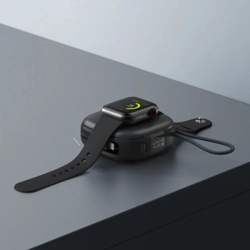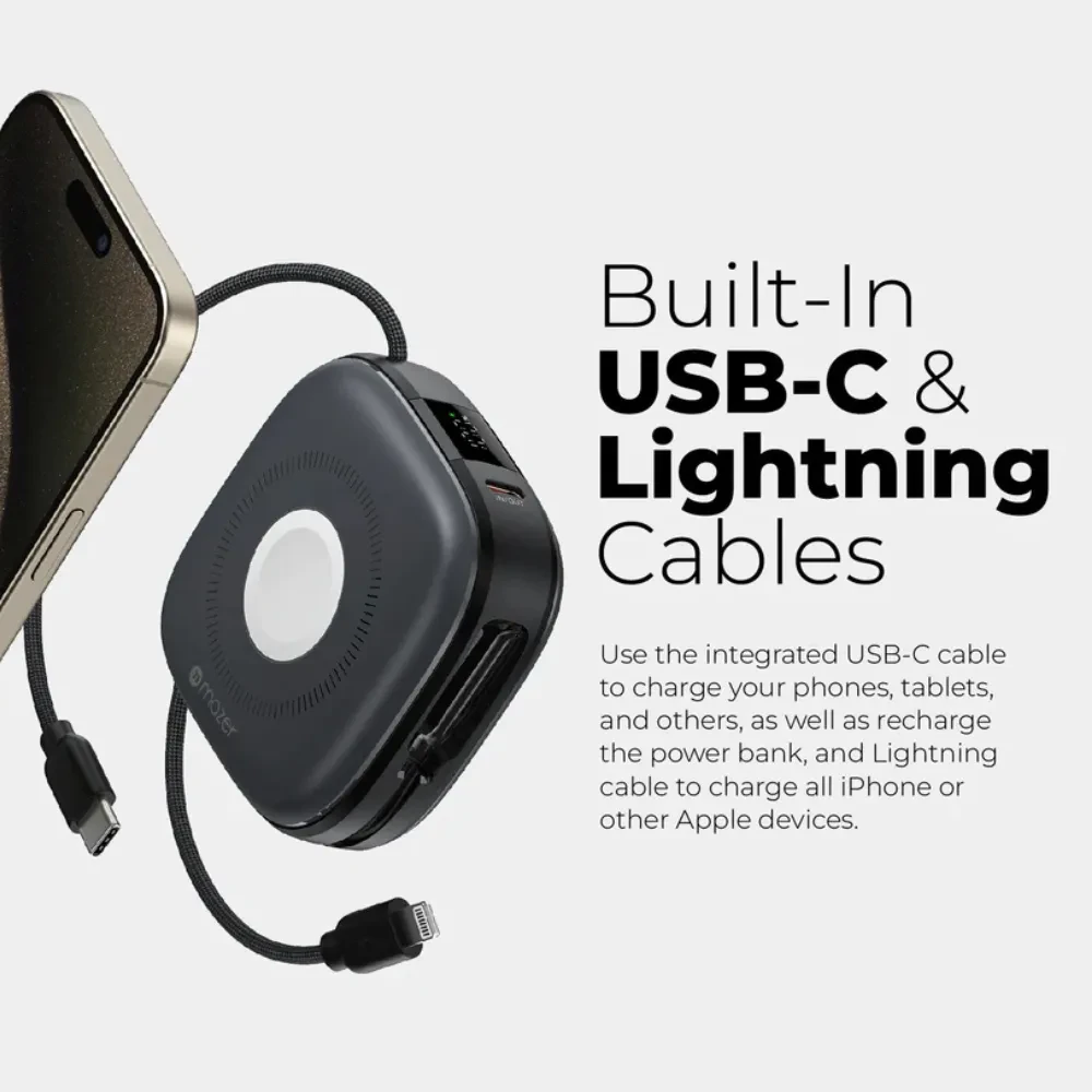 Charge your iPhone, Apple Watch, and AirPods all at once with the Veger 3 in One MagSafe Wireless PD Fast Power Bank. Featuring a convenient snap-on 15W MagSafe wireless charger for easy, cable-free use, it also offers a fast 20W USB-C Power Delivery output for rapid wired charging. Built-in Lightning and Type-C cables mean no extra cords are needed, and the foldable Apple Watch charger saves space when you’re on the move. Its compact, lightweight design is perfect for travel, while advanced safety features protect against overheating and overcharging. This all-in-one power bank is the ideal companion for Apple device users looking for simplicity and speed.