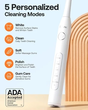 Offers 5 brushing modes (White, Clean, Soft, Polish, Gum Care) for every oral need.