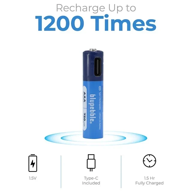 Blupebble Blucell AAA 4 Pack Type-C Rechargeable Battery 500mAh