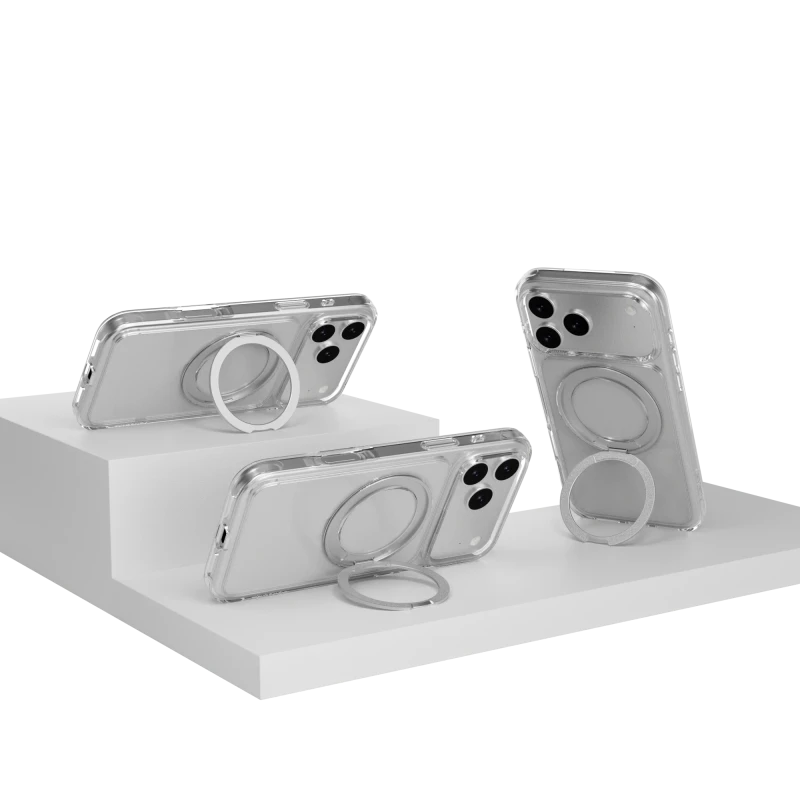 The MagStand 360 M Protective Case combines rugged durability with everyday functionality. Its built-in rotating ring stand supports a full 360° rotation, letting you switch effortlessly between portrait and landscape orientations for the most comfortable viewing angle. Certified with U.S. military-grade protection, it withstands drops from up to 16 feet to keep your device safe. Enlarged camera cutouts ensure smooth control while reducing accidental touches, while full MagSafe compatibility makes it easy to pair with chargers and accessories. A perfect mix of style, practicality, and protection.