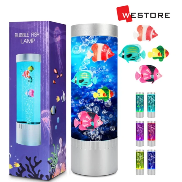 The Bubble Fish Lamp features colorful bubbles that float gracefully through the water, creating a calming ambiance ideal for relaxation or concentration. Its LED lights cycle through a spectrum of colors, enhancing the visual appeal of this unique bubble tube lamp with fish. The sturdy base ensures stability, while the clear acrylic tank and lifelike fish create an immersive underwater experience. Illuminate your home with style and quality with the Bubble Lamp.