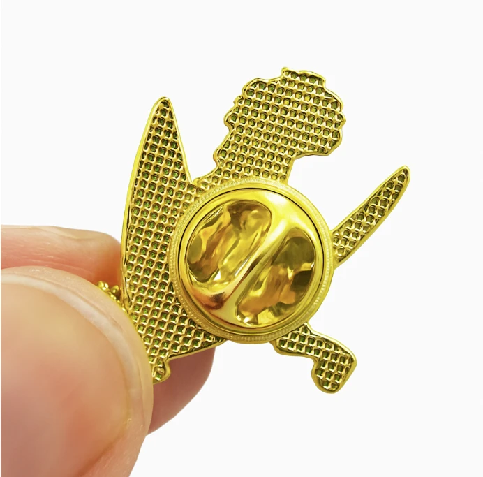 The back side includes a secure metal label pin with a butterfly clutch lock, ensuring firm attachment to your clothing, bags, hats, uniforms, or accessories. The textured metal backing adds durability and grip, while the polished finish gives the badge a premium appearance.