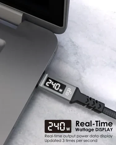 Ego Wiry Mag 240W USB-3.2 Gen2x2 20Gbps Real Time Display Type-C To C Cable 2M - Grey