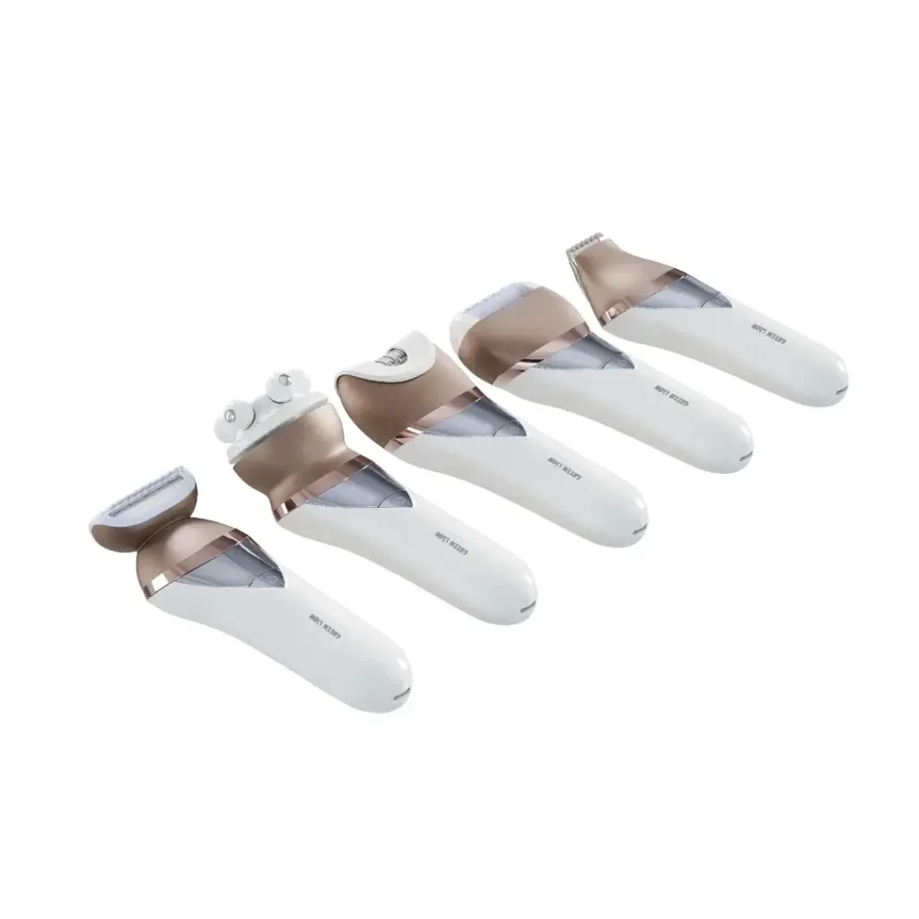 5 Interchangeable Heads: Epilator, Shaving, Bikini, Massage & Grinding