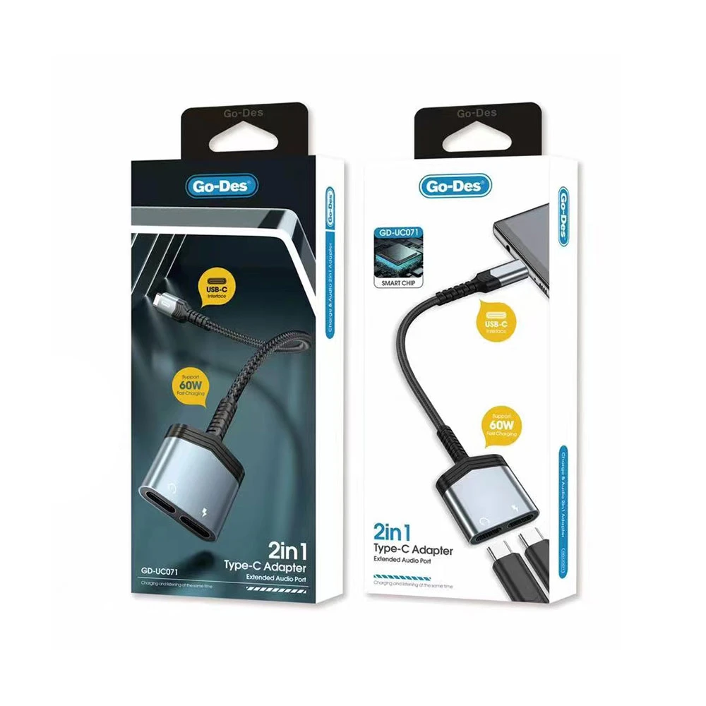 Go-Des GD-UC071 Type-C 2in1 Charging and Audio Adapter