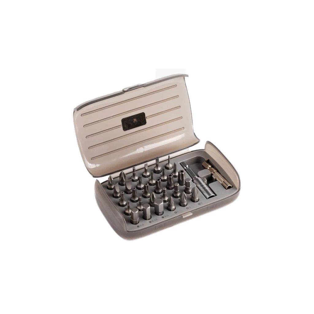 With its sleek black appearance, the Green Lion 35 In 1 Electric Screwdriver Set will elevate both your professional and do-it-yourself projects. This screwdriver has a remarkable 90-day standby period and is operated by a powerful 2500mAh lithium battery, so it's always ready for your tasks. It guarantees exact and efficient work with a strong electric torque of 5N m and an idling speed of 200 rpm. It is made of premium S2 steel, which ensures lifespan and durability. In addition to a convenient electric screwdriver handle, a portable fabric storage bag, a USB charging cable with Type-C input, and a wide range of bits and accessories, the package includes an LED light for better visibility. Each part fits into the proper storage spaces with ease, providing mobility and organization. The best tool partner you can have is the Green Lion screwdriver set.