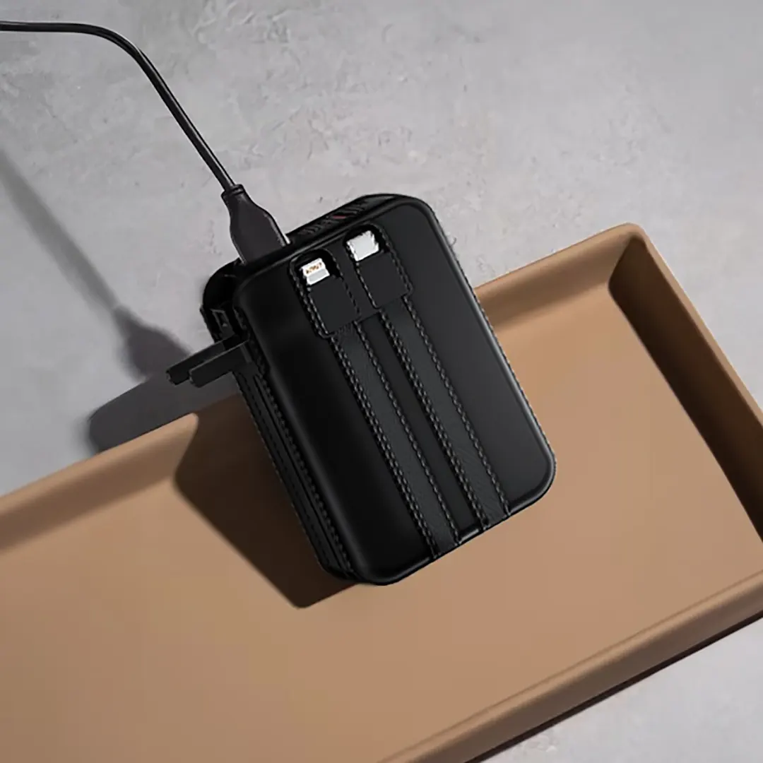 Universal on-the-go charging becomes easier with the Green Lion Charge Mate Power Bank, featuring an optimal 10,000mAh capacity. It is made from sturdily durable ABS material, it is designed to take an AC power input of 100 to 240V, 50 to 60Hz, and 0.5A, making it suitable for worldwide use. Apart from PD 22.5W and QC fast charging, the power bank comes equipped with USB-A and USB-C ports; in addition, it has built-in Type-C and Lightning cables that allow easy compatibility with different devices. The digital display keeps the users updated on the real-time battery status, while interchangeable plugs (UK, EU, and US) offer universal charging access. Ideal for travel and everyday life, the power bank offers all your devices a high-speed, efficient charging experience.