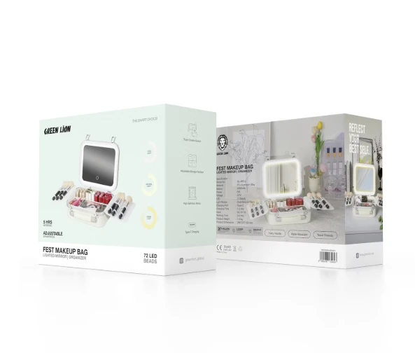 The Green Lion Fest Make-Up Bag is a stylish, portable, and intelligently designed beauty organizer made for effortless makeup application anytime, anywhere. Built from durable yet lightweight PC and aluminum alloy, it combines strength with elegance. Equipped with 72 LED beads powered by a 2000mAh battery, it offers cool, natural, and warm lighting modes to match any environment. The touch-control interface allows you to adjust brightness instantly, while the adjustable internal dividers keep your cosmetics neatly arranged. With its high-definition mirror and compact design, this makeup bag is perfect for travel, daily use, and beauty enthusiasts who want flawless lighting and organized storage on the go.