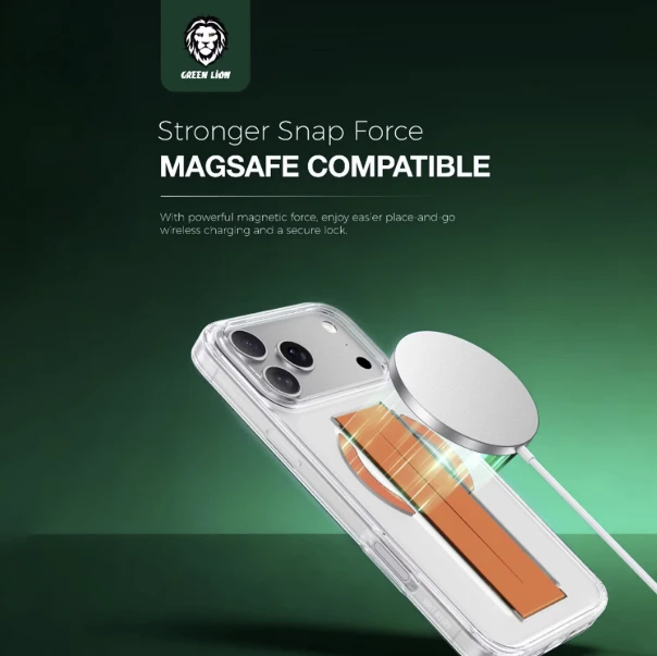 The Green Lion MagSafe Grip Case for iPhone 17 Pro is built to deliver strong everyday protection with a clean, practical look. Designed with military-grade shock protection, it helps shield your phone from daily drops, bumps, and impacts. Raised edges around the screen and camera provide extra guarding for the most sensitive parts of your device, while the anti-yellowing clear back keeps the case looking fresh over time. The MagSafe-compatible design ensures smooth, secure alignment with MagSafe chargers and accessories, so you can snap on power or add-ons with confidence. A built-in comfortable grip makes the phone easier to hold and reduces the chance of accidental slips. For users who want a balance of protection, utility, and style, this case is a sleek everyday companion for the iPhone 17 Pro.