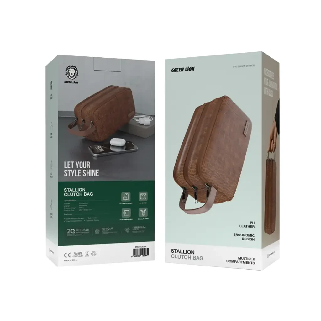 The Green Lion Stallion Clutch Bag is sophisticated and aptly fits the needs of style and function. A top layer of high-quality PU leather gives the bag a really sleek finish that could be durable for daily use, while the interior is lined with microfiber for a soft, protective space to place your essentials. Ergonomic in design, with a sturdy handle to boot, it's comfortable to carry and thus perfect for daily use or travel. Accessories could be well organized in the mesh pockets, from gadgets and chargers to cosmetics and small personal things. The zinc alloy zipper provides secure closure, and its durability gives the accessory a long life. Water-resistant, the Green Lion Stallion Clutch Bag protects your belongings from spills and light moisture for peace of mind on the go. Its delicate texture and elegant design make it suitable for various occasions, merging practicality with sophistication. Give an edge to your organization with this multi-purpose and stylish clutch bag.