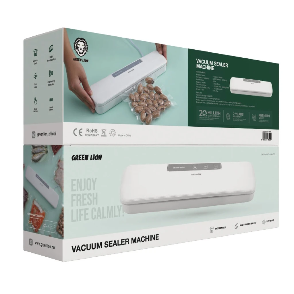 The Green 2-in-1 Vacuum Sealer is a powerful and effective tool for preserving food freshness. This machine uses vacuum packaging technology to keep food fresh. It operates at 80 watts. Its compact dimensions (375 x 82 x 46 mm) allow it to be securely mounted on a countertop. This machine can seal multiple bags simultaneously, allowing you to seal multiple bags at once. The vacuum sealer removes air from the bags, keeping food fresher for longer. The sealing time ranges from 6 to 15 seconds, minimizing waiting time and ensuring quick and effective results. Ideal for home kitchens or small restaurants, this vacuum sealer combines practicality, convenience, and a distinctive design in an easy-to-use package.
