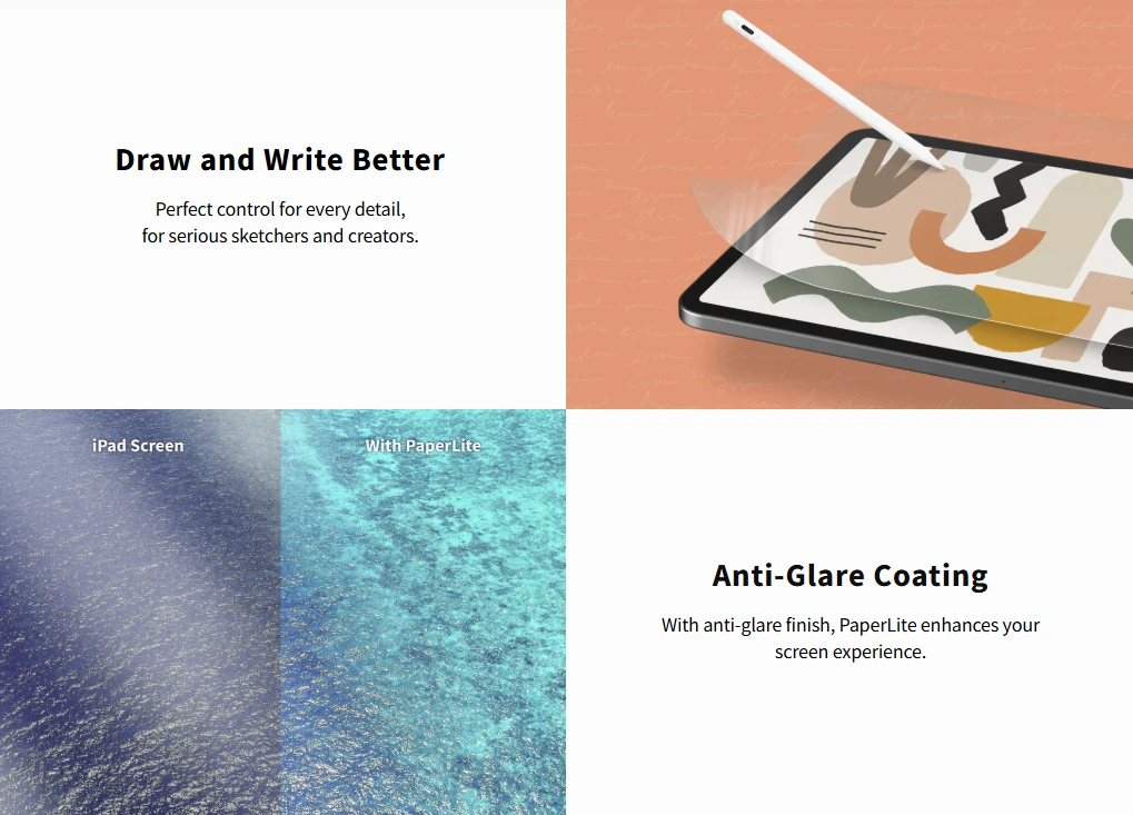 The SwitchEasy PaperLite brings the natural paper-like writing and drawing experience to your iPad. With its anti-glare finish, ultra-thin design, and premium Japanese material, it ensures precision, comfort, and protection. Bubble-free and easy to install, it’s perfect for creators who want the feel of real paper in a digital world.