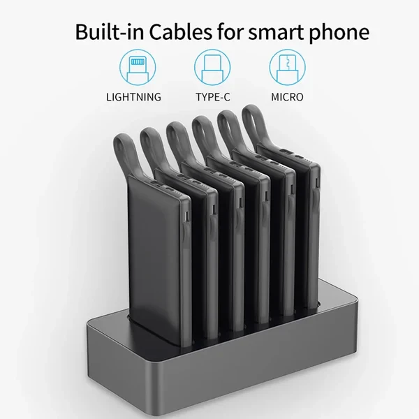 Stay powered on the go with the WST 6 IN 1 Multiple Power Bank Docking Station (PB932W6M) — the ultimate charging solution for families, offices, or retail counters. This all-in-one station includes six detachable power banks, each with its own charging capability, making it perfect for sharing or rotating throughout the day. With its sleek design and organized docking base, it keeps your space neat while ensuring everyone has access to portable power.