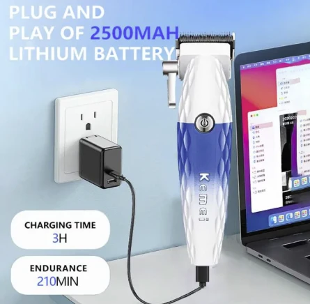 The Kemei KM-1689A is a stylish and powerful hair clipper built for both home and professional use. Featuring precision powder metallurgy blades, it ensures smooth and accurate trimming without snagging. The durable body with LCD display offers multiple speed settings and adjustable cutting lengths, making it an all-in-one grooming solution. Equipped with a 2500mAh Li-Ion battery, it runs for over 90 minutes and recharges quickly via USB in just 2 hours. Compact, versatile, and reliable, this trimmer is perfect for household, commercial, and travel use.