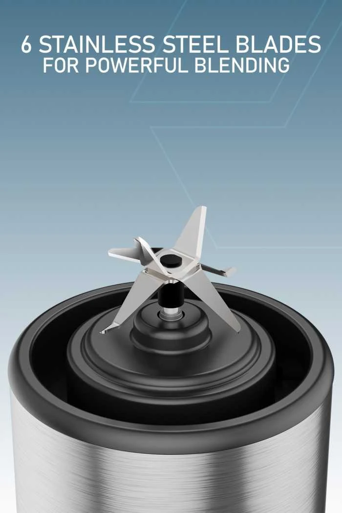 Powerful 16,500 RPM motor with 6 stainless-steel blades