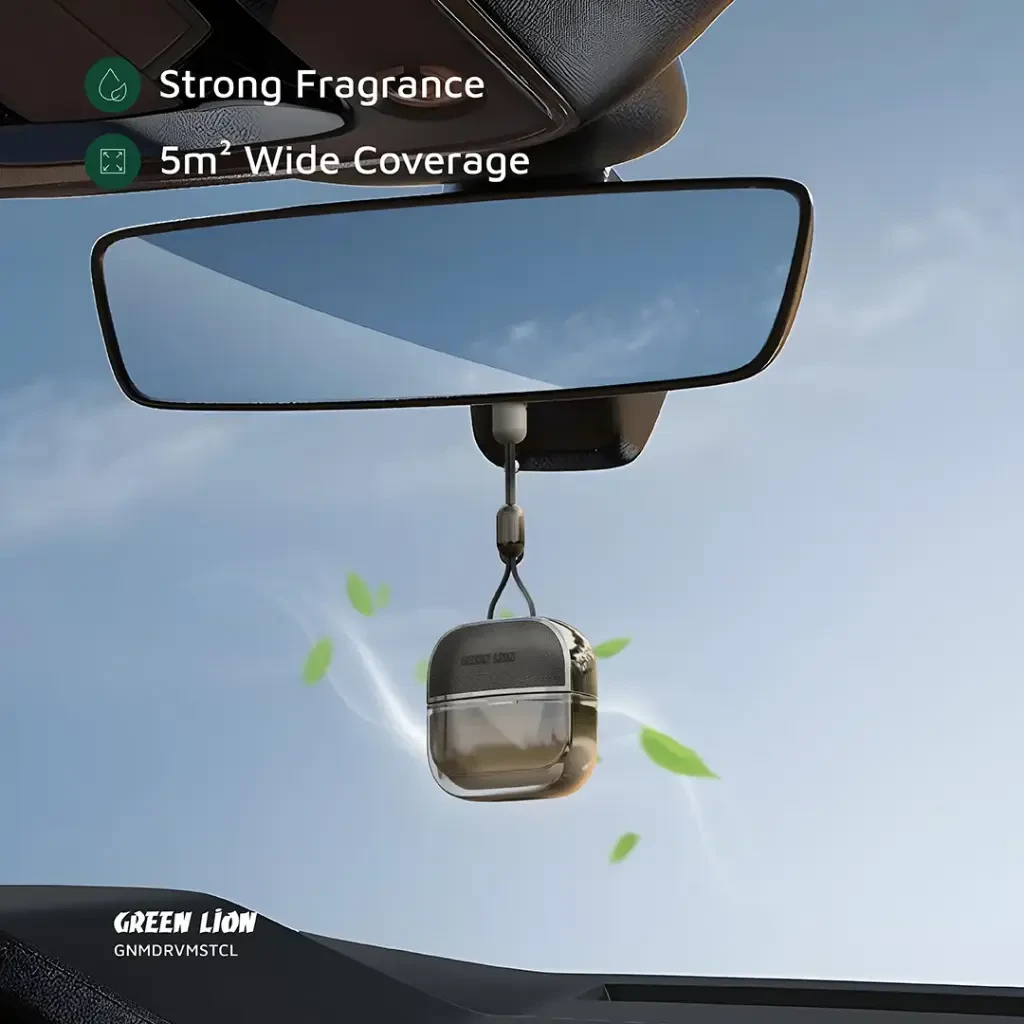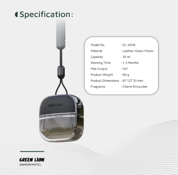 The Green Lion Drive Mist Hanging Car Diffuser is a compact and stylish solution to keep your car smelling fresh and welcoming. Made from a quality mix of leather, glass, and plastic, it features a 10mL capacity with a secure leak-proof design so you can hang it confidently. The Charm Encounter fragrance spreads evenly to cover up to 5m², filling the entire cabin with a strong yet pleasant scent. With passive diffusion that lasts between 1 to 3 months, you enjoy long-lasting freshness with zero effort, while the clean, aesthetic look enhances your car’s interior.