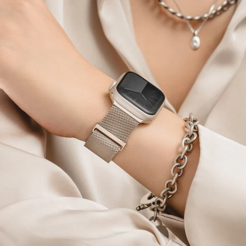 The MagEasy Milanese Watch Loop combines timeless elegance with modern comfort. Crafted from high-quality stainless steel in a breathable woven design, it ensures durability and style. With its magnetic clasp, the loop adjusts freely to fit wrists from 130mm to 210mm, offering better compatibility and a secure fit. The smooth trim prevents scratches, keeping your wrist comfortable all day.