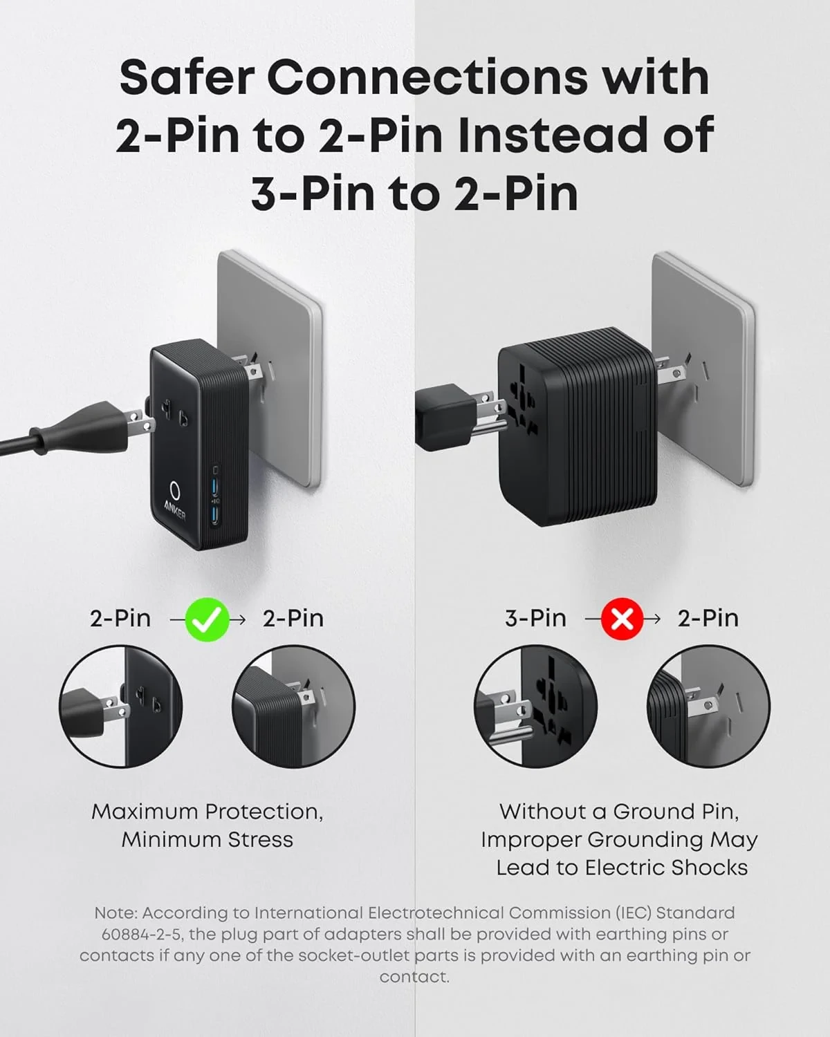 The Anker 20W 5-in-1 Nano Travel Adapter is the compact all-in-one solution for your travel charging needs. Equipped with a single AC outlet and four USB ports (2× USB-C and 2× USB-A), it lets you power multiple devices at once while you’re on the go. With a sleek, ultra-compact form and retractable/foldable plug pins, it fits easily in your suitcase or carry-on. Delivering up to 20W fast charging from one USB-C port and built for over 200 countries with four plug standards, this adapter is perfect for travelers and digital nomads.