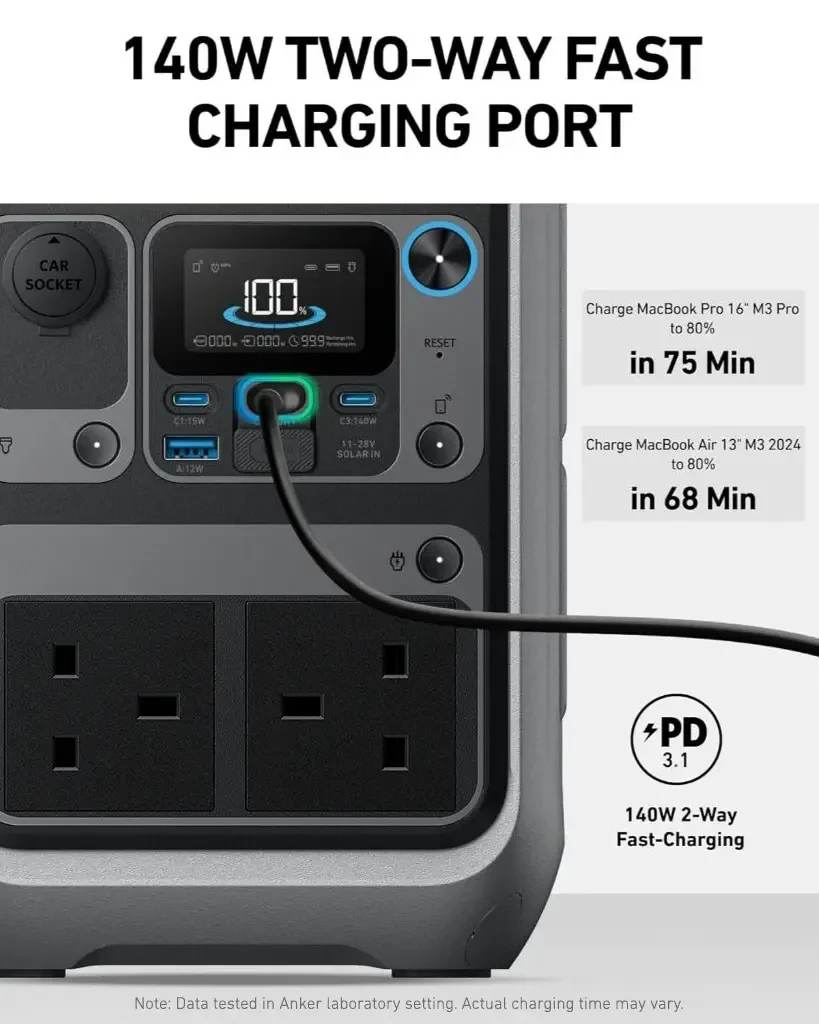 4 Recharging Methods (Wall, Solar, Car, USB-C PD 3.1)