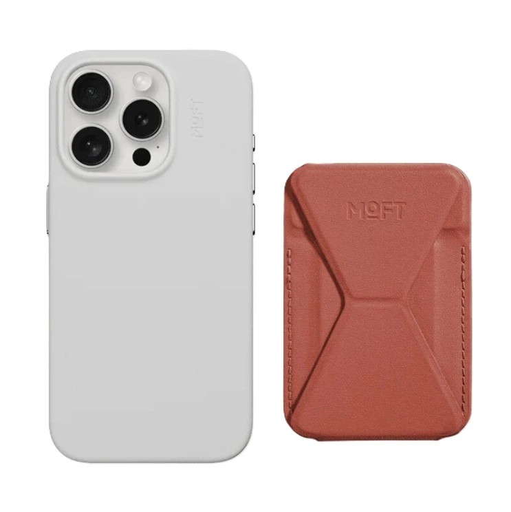 The MOFT Snap-On iPhone Stand & Wallet (MOVAS) is a sleek and practical accessory designed to simplify your everyday carry. It features a built-in wallet that holds up to two cards, keeping your essentials within easy reach. The magnetic stand offers three versatile viewing modes—Portrait, Landscape, and Floating—providing hands-free convenience for watching videos or video calls. Designed to attach securely to MagSafe-compatible iPhones with a strong 15 Newton magnetic force, it’s easy to snap on and remove. Made from durable MOVAS™ vegan leather, this accessory combines style and functionality while seamlessly fitting with Apple’s MagSafe cases and other compatible options.
