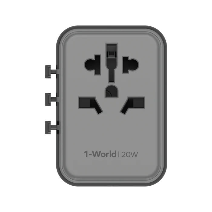 The Momax 1-World 3-Port Travel Adapter 20W is a versatile charging solution designed for global travelers.