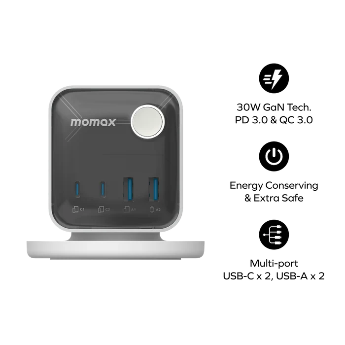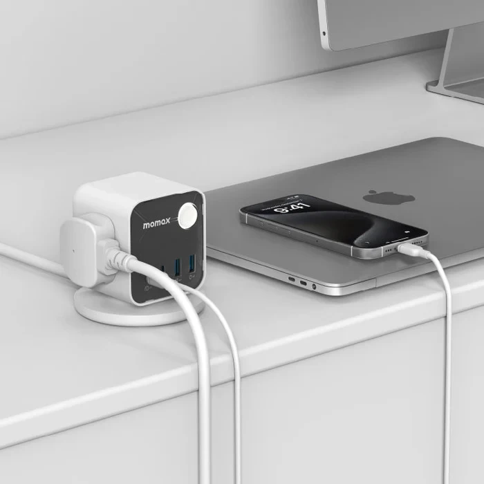 Momax 7 In 1 Smart-Hub Cube Power Strip - US20UKW - White