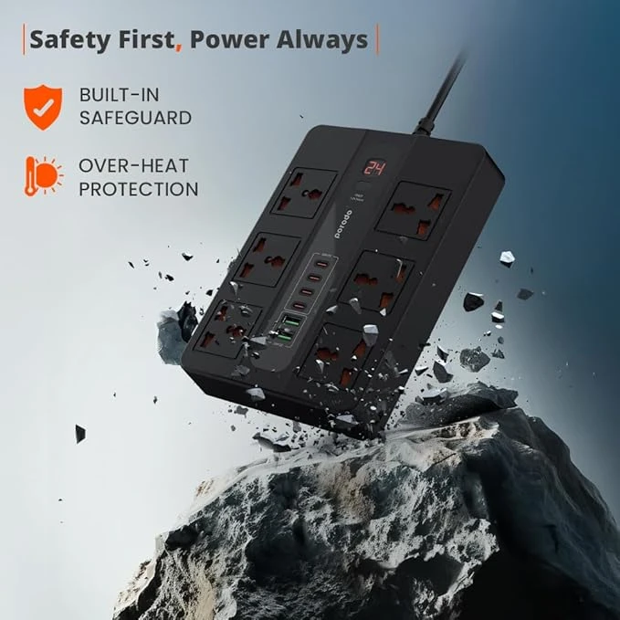 Porodo 12 in 1 Multi-Port Power Strip & Charger with 3m Power Cord (FWCH009) – Black