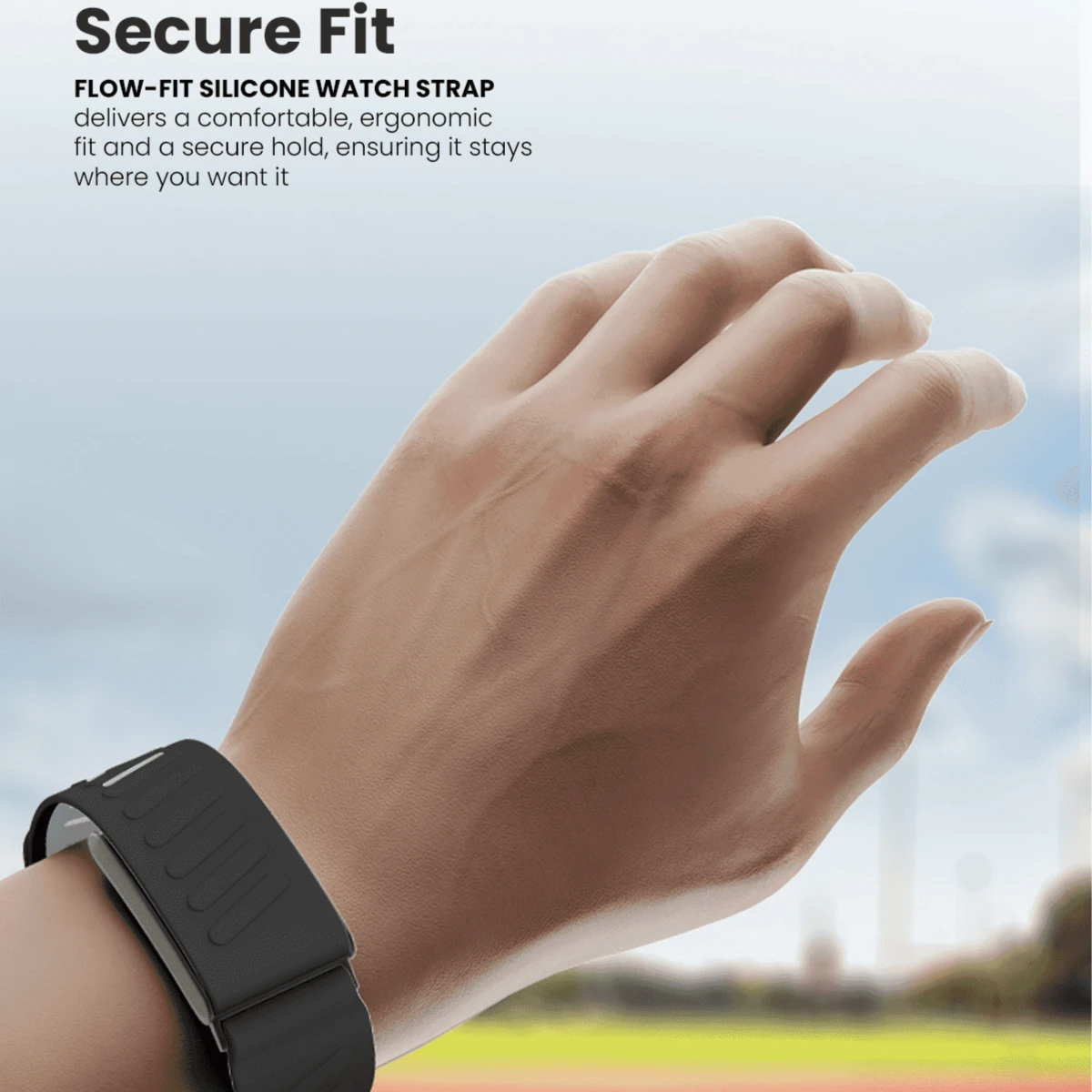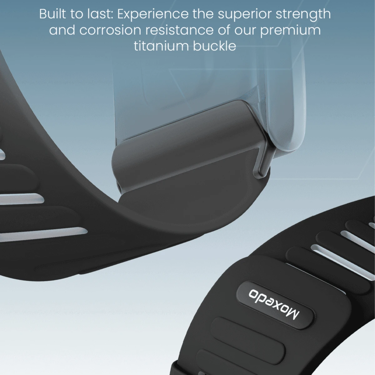 The Moxedo Flow-Fit Silicone Strap is a premium accessory designed exclusively for the WHOOP 4.0 fitness tracker, ensuring a secure and comfortable fit during wrist-based activities. Crafted from high-quality, hypoallergenic silicone, this strap is sweatproof, waterproof, and breathable, making it ideal for intense workouts, swimming, and daily wear. Its lightweight construction and adjustable loop accommodate various wrist sizes, providing a snug yet comfortable fit for both men and women. The strap features a strong locking mechanism to keep your WHOOP 4.0 securely in place, allowing for accurate data tracking without distractions. Whether you're engaging in high-intensity training or going about your daily routine, the Moxedo Flow-Fit Strap offers durability and comfort to support your fitness journey.