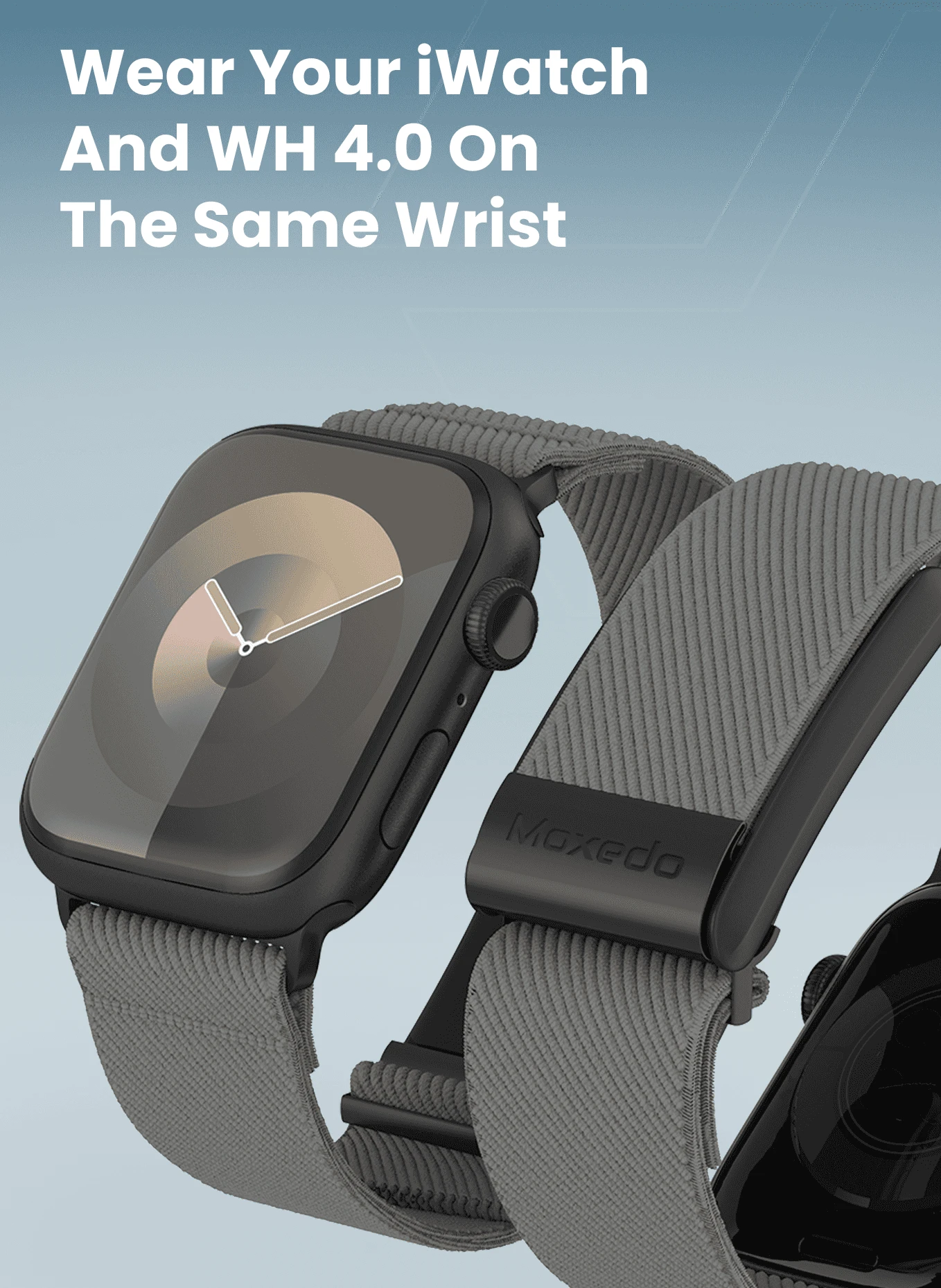 MOXEDO HYBRID FIT-WEAVE NYLON BRAIDED BAND FOR I WATCH 44,45 & 49MM & WH - MXFW012 - GRAY