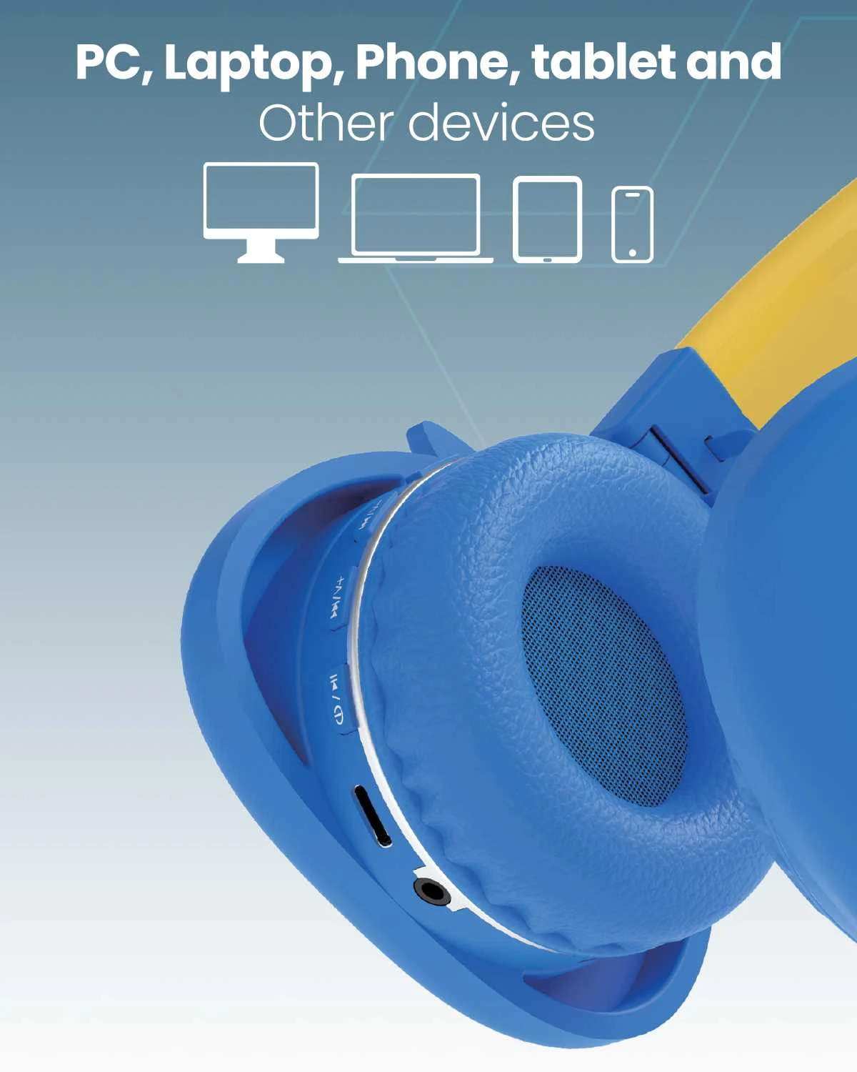 CRAFTED FOR YOUR LITTLE ONES: This Moxedo Wireless Headphone with Built-in volume limit technology at a safe level of 90dB for children. With soft and comfortable over-ear pads, skin friendly and breathable, the materials used are safe for kids listening to their music and play on media devices for long period of time in a total comfort. Suitable for all kids over age 3+ and up.