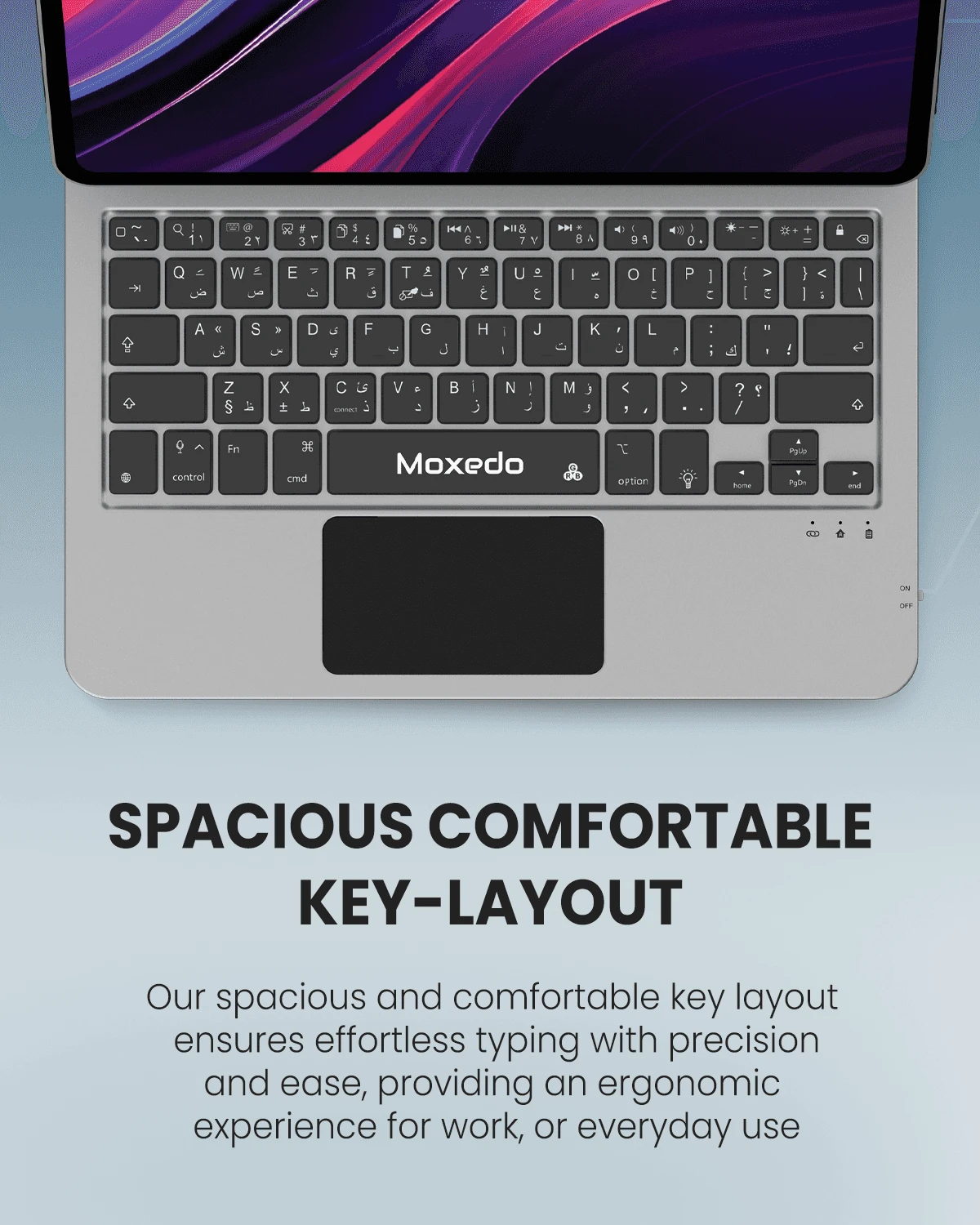 Instant Connection and Easy to Use: Simply open the Moxedo magic wireless keyboard case to get started, it really is a wonderful portable wireless keyboard for traveling outside or working in public spaces. We just need to pair them successfully the first time, the Bluetooth keyboard will automatically be connected to our iPad via superior instant connection the next time when we use it.