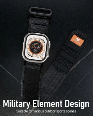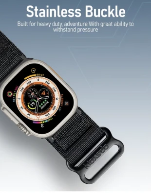 The Moxedo Tactical Sports Rugged Strap is designed for Apple Watch users seeking durability and comfort. Inspired by military tactical gear, it features a woven nylon canvas construction with stainless steel connectors and buckle, ensuring a secure fit during various activities. The breathable, skin-friendly material offers a comfortable wrapping feeling around the wrist. The strap's unique design includes a woven pattern and reflective label, adding a touch of individuality. Its ultra-strength hook-and-loop closure prevents slipping or loosening, making it suitable for sports enthusiasts and everyday wearers alike. Compatible with a range of Apple Watch sizes 44mm,45mm and 49mm.