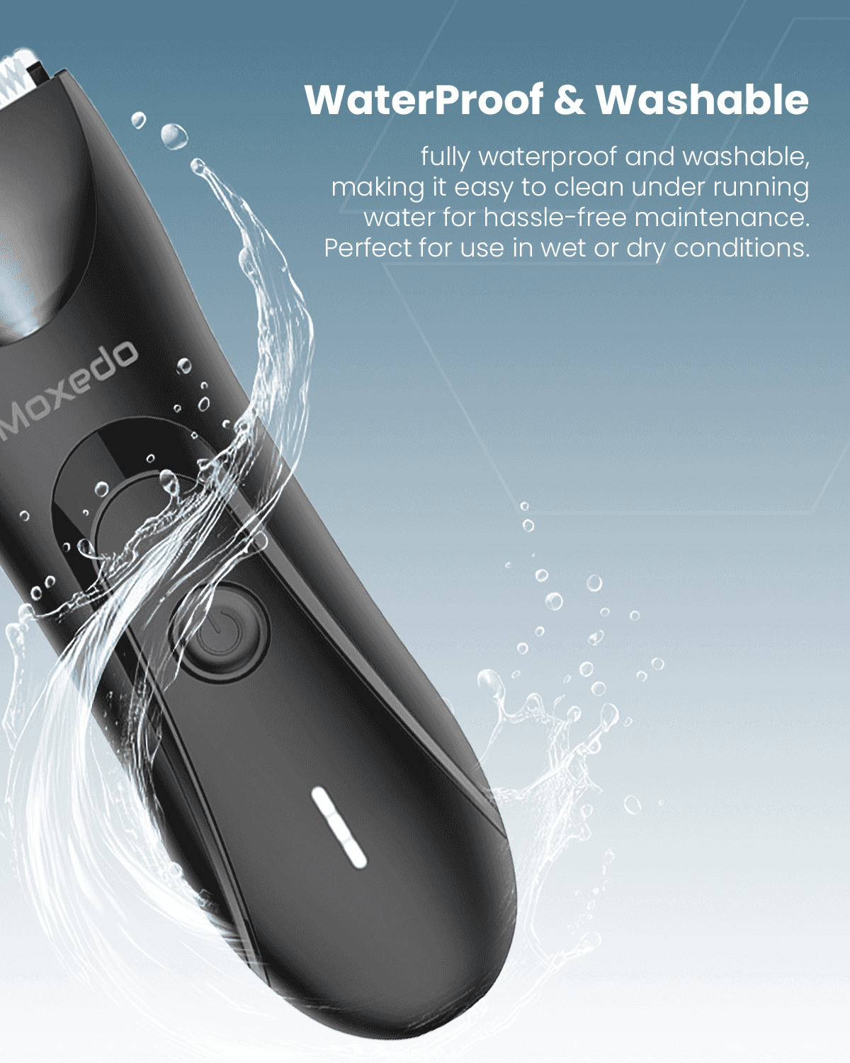 Moxedo Cordless Hair Trimmer – 7000 RPM, Waterproof, USB-C Rechargeable The Moxedo Cordless Hair Trimmer is a versatile, high-performance grooming tool built for both professional barbers and home users. Featuring a precision zero-gap T-blade and a powerful 7000 RPM chip-controlled motor, it delivers smooth, accurate trims for hair, beards, and body grooming. Designed with convenience in mind, it includes a built-in LED torch light for better visibility, a USB-C charging port, and a foldable charging stand. Its cordless, waterproof design ensures easy use and cleaning—making it ideal for travel, daily grooming, or on-the-go touch-ups. Key Features: Built-in LED torch light for enhanced visibility during trimming Cordless or plug-in operation with up to 150 minutes of use Zero-gap T-blade for precise cuts, fades, and beard shaping 7000 RPM chip-controlled motor for powerful, consistent performance USB-C rechargeable—charge via laptop, power bank, or phone adapter Waterproof body for safe use in the shower and easy cleaning Foldable charging stand included for space-saving storage
