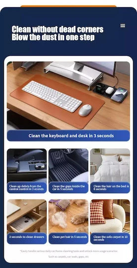 Suitable for electronics, cars, vents, leaves & general cleaning