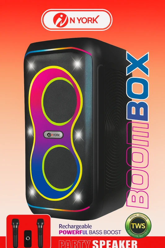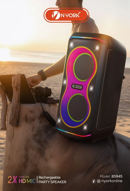Turn any moment into a full-blown party with the NYork BoomBox BS945 Wireless Bluetooth Speaker, designed for powerful sound, deep bass, and nonstop entertainment. Equipped with dual 6.5-inch drivers and delivering up to 60W of maximum power output, this speaker transforms your gatherings with immersive, room-filling sound.