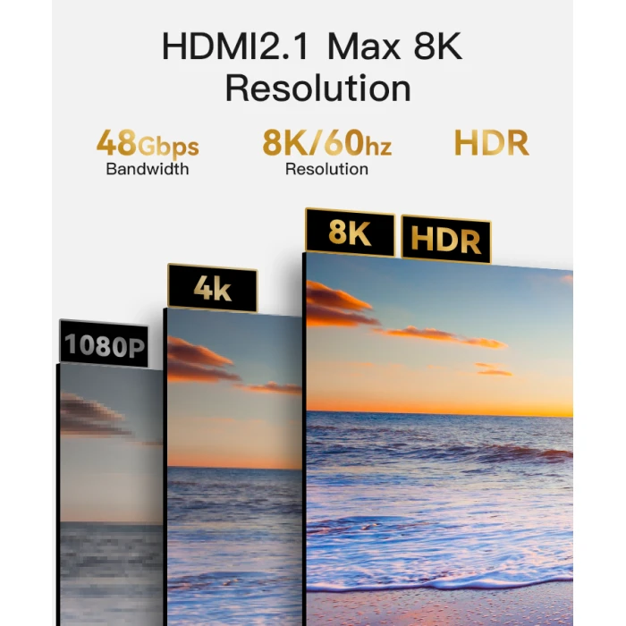 Experience ultra-clear visuals with the Yesido HM11 HDMI2.1 cable supporting up to 8K/60Hz resolution and HDR for stunning detail.