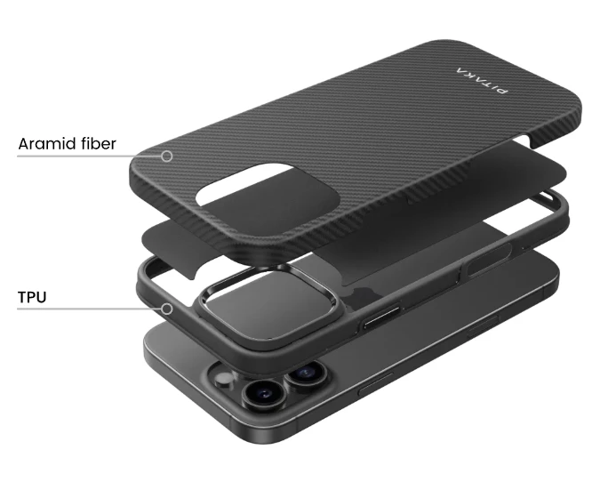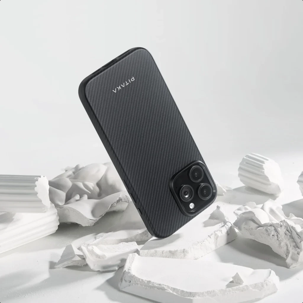 The Pitaka Protective Woven Case for iPhone 16 Pro Max combines aerospace-grade aramid fiber with TPU to deliver military-grade protection. It guards your phone against shocks and impacts while maintaining a slim and stylish profile. The case supports MagSafe and wireless charging, and elevated bezels protect the screen and camera from scratches. Its minimalist woven design adds sophistication to your device while keeping it safe every day.