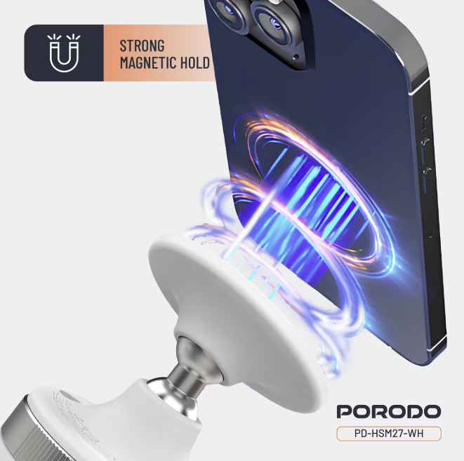 Porodo Vacuseal Smart Suction Magnetic Phone Mount Secure your phone effortlessly with the Porodo Vacuseal Mount. Featuring a powerful N52 magnet and strong suction base, it holds devices from 5.5 to 6.9 inches firmly in place—even on bumpy roads. The adjustable angle ensures optimal viewing for calls, media, or navigation. Made with durable silicone, ABS, and TPE, it's perfect for use at home, work, or in the car. Key Features: Strong N52 magnetic hold Fits phones 5.5" to 6.9" Adjustable viewing angle Secure suction base Durable materials (silicone, ABS, TPE) Ideal for home, office, or car use