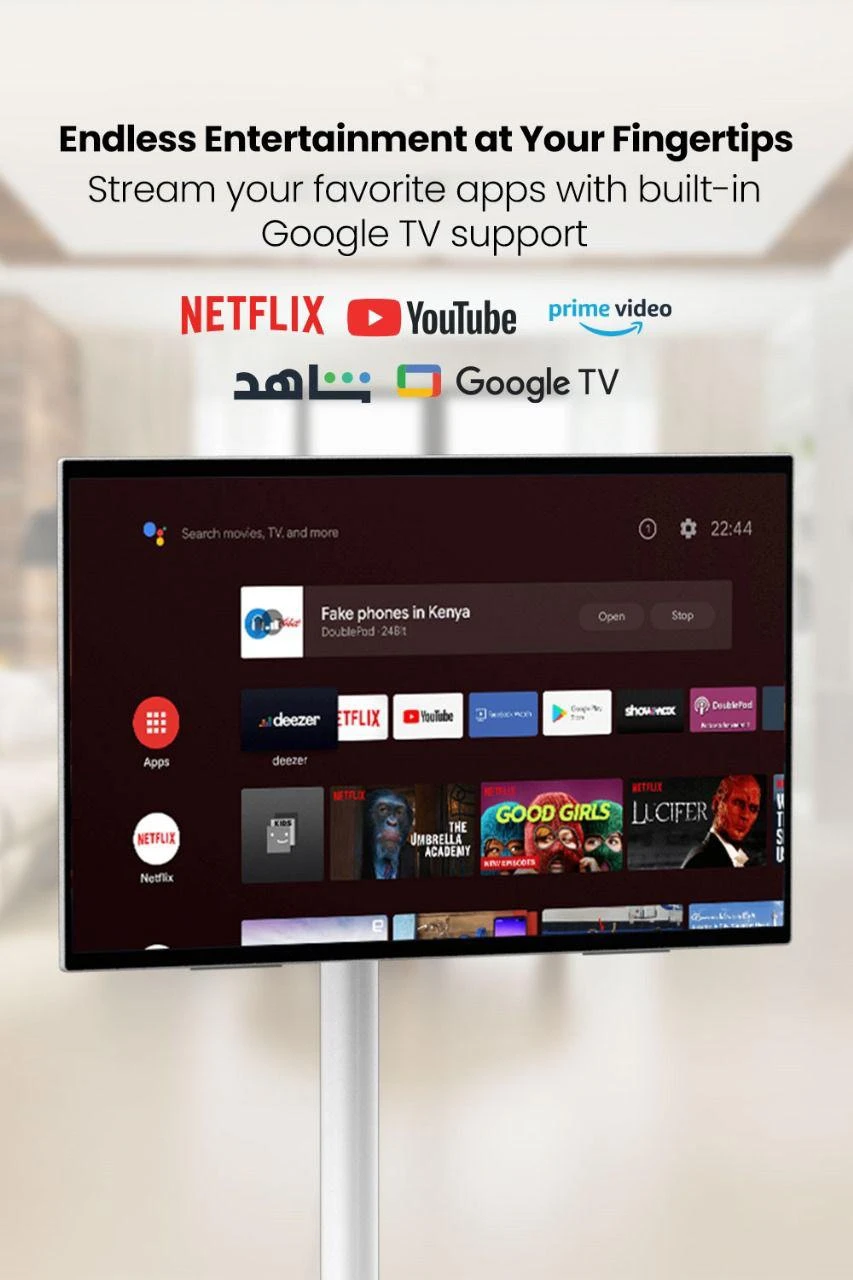Android TV + Google TV Support for seamless access to Netflix, YouTube, Prime Video, Shahid, and more.