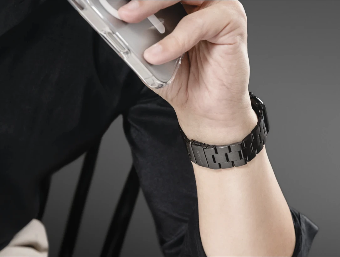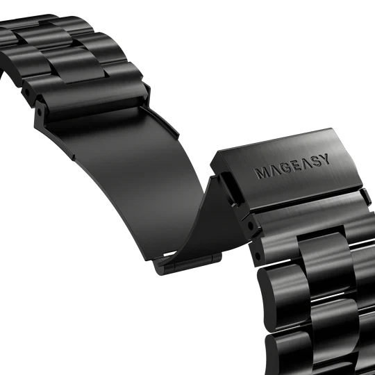The MagEasy Noble Stainless Steel Apple Watch Loop is crafted from premium 304 stainless steel, combining elegance and durability in one sophisticated band. With its refined brushed finish and classic link design, it adds a luxurious touch to your Apple Watch. The quick-release mechanism allows easy adjustment to fit wrist sizes between 180mm and 240mm, while the press-to-release clasp ensures a secure, comfortable fit. Perfect for both everyday wear and formal occasions, it’s a statement of timeless style and precision craftsmanship.
